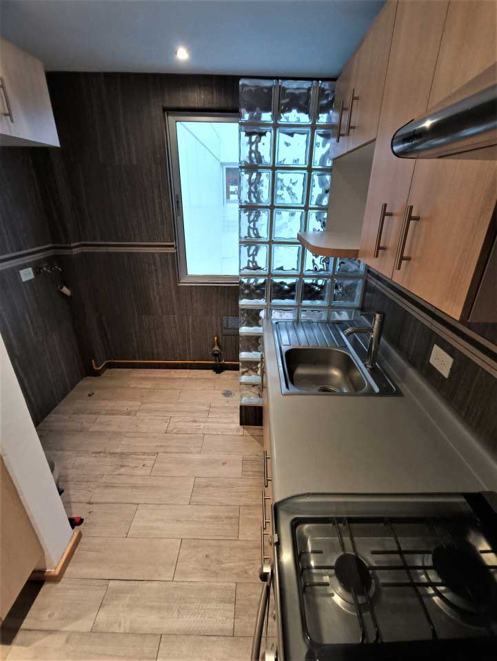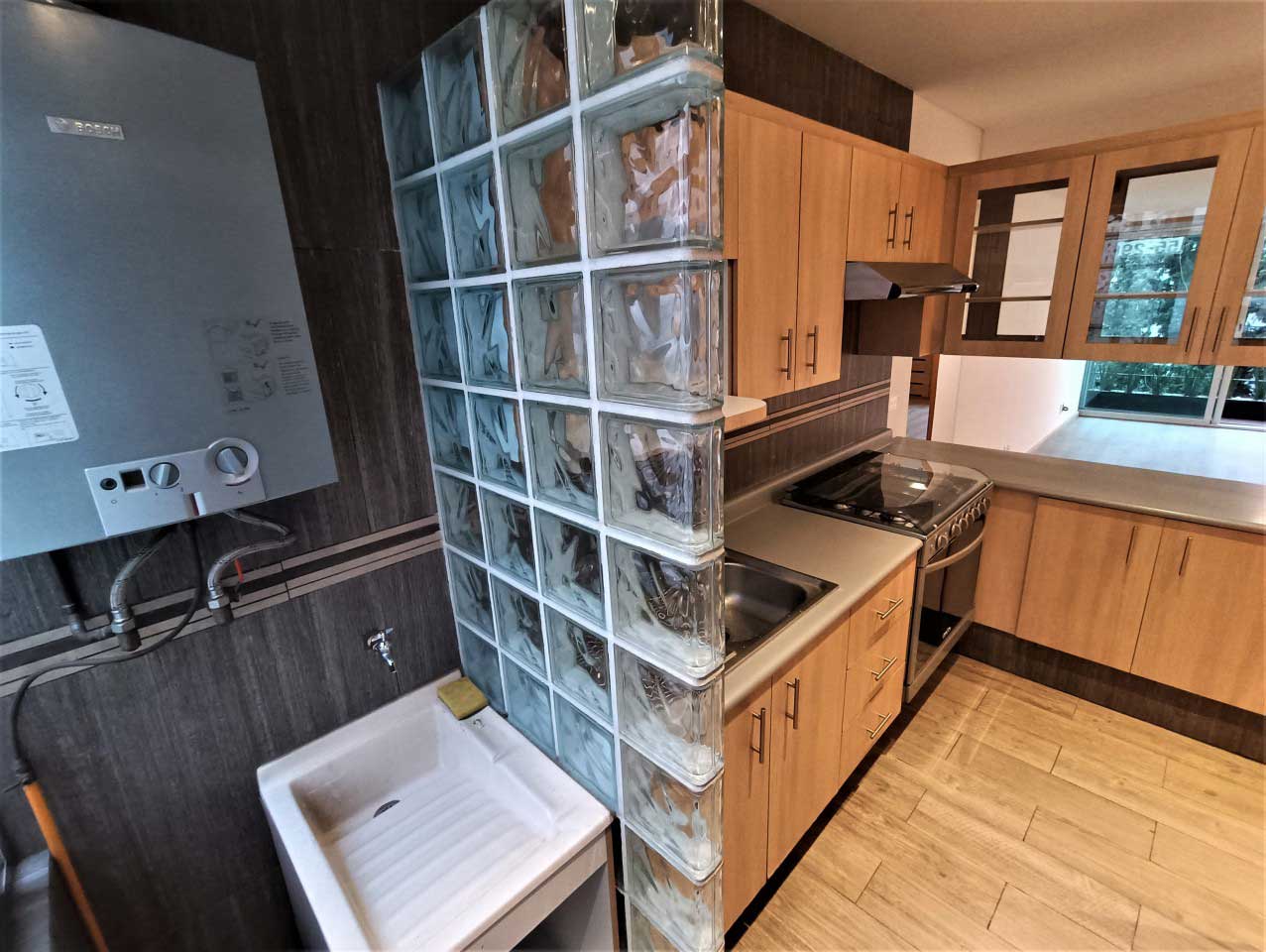 Área de lavado: calentador, instalación para lavadora y lavadero